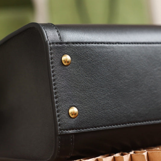 [Luxe]0528 Aged Calfskin Quilted small Gabrielle Hobo Black