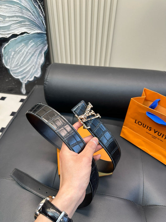 [Luxe]LV Diamond-cut steel buckle with crocodile skin pattern