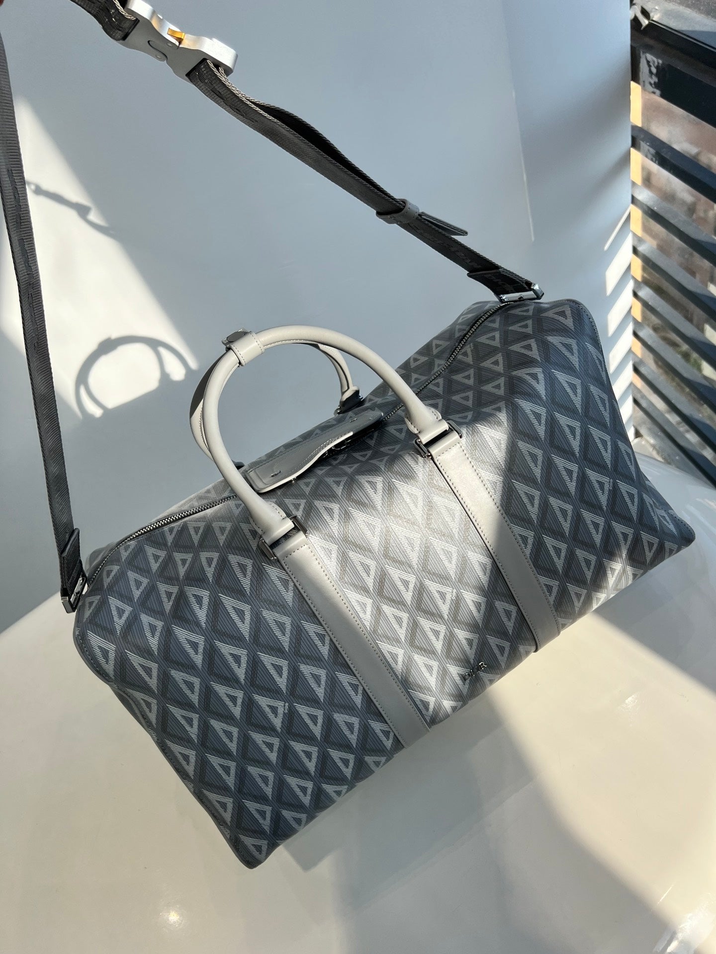 High-end spring and summer new series of men's pattern travel bag, inspired by the diamond cutting process, reshaping the classic logo of the round brand, creating a unique deep relief texture, the body is carefully made of patterned cotton canvas, the fabric is light and flexible, the gloss is good, the grain is clear, the material is wear-resistant and durable, and the charming diamond shape is different from the visual three-dimensional and the degree of fullness. The texture is fantastic. The front is decorated with a small logo, two-way zipper opening and closing with the magnetic design of the saddle flap, which is very convenient, the inside space is large, and there is an internal partition layer, the capacity is huge, and the super can be installed. Double handle design, portable casual atmosphere, with detachable black jacquard adjustable shoulder strap, connected with cool black aluminum buckle metal, this buckle is just too cool. Can be worn on one shoulder or crossbody. The whole bag is very atmospheric and advanced, placed on the suitcase or directly back out are very good, is definitely an indispensable bag for you to go out. Men and women can back, this is really a must, it is too easy to use size: 50X25X21.5cm