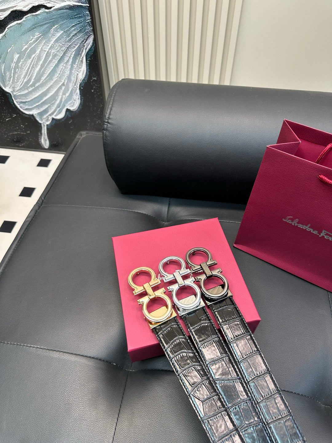 [Luxe]Ferragamo Crocodile skin pattern belt