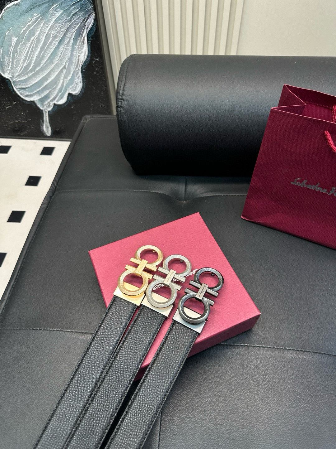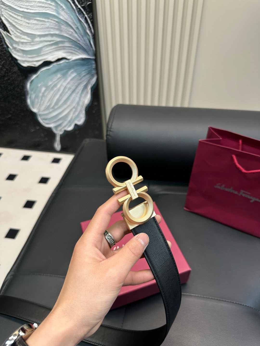 [Luxe]Ferragamo Gear pattern, frosted surface, steel buckle