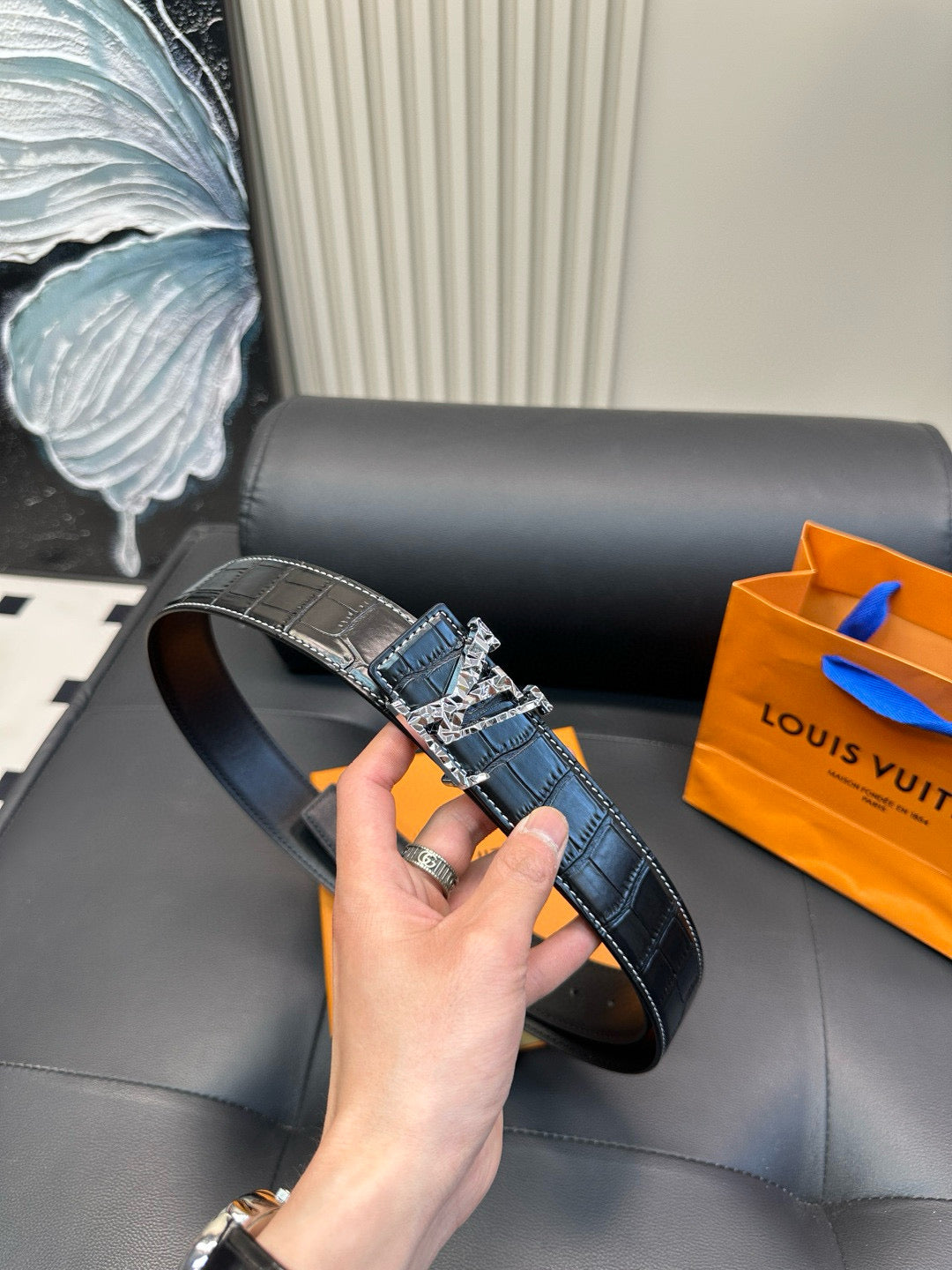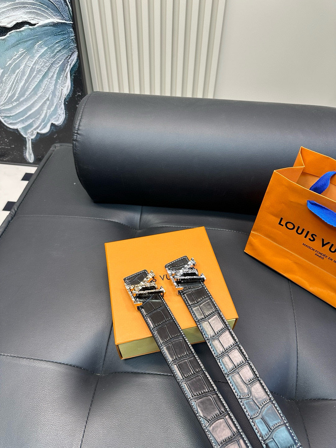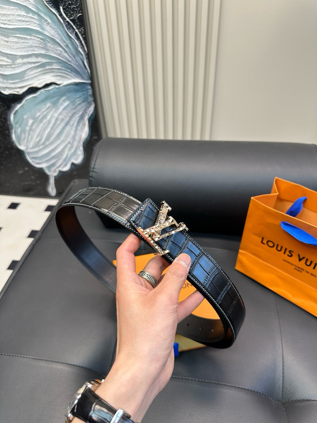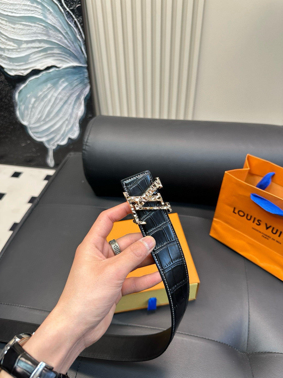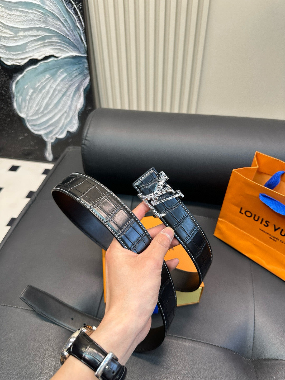 [Luxe]LV Diamond-cut steel buckle with crocodile skin pattern